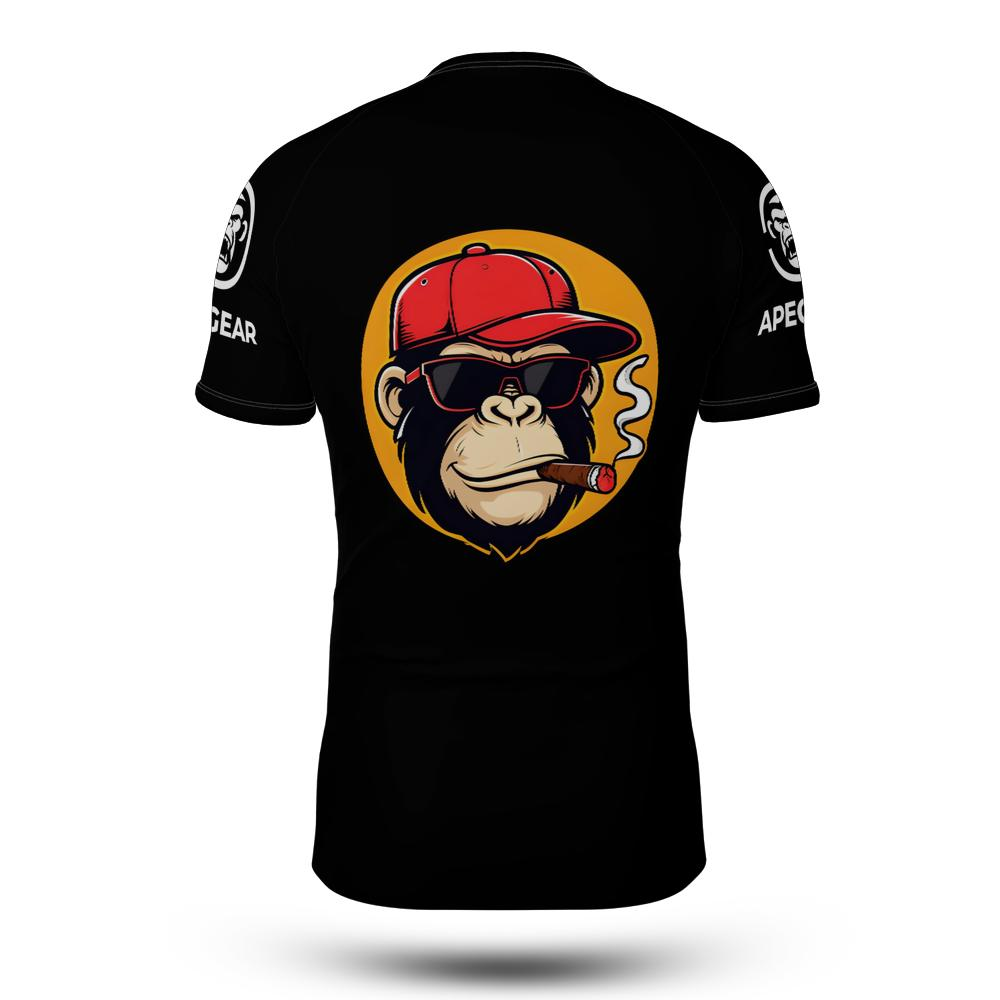 Fierce cigar-smoking ape design dominating the rear panel