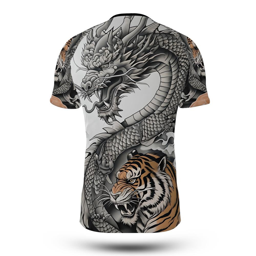Channel the spirit of ancient martial arts with the Dragon & Tiger Rashguard, a striking fusion of Eastern artistry and modern combat performance. Featuring a fierce tiger locked in an eternal clash with a majestic dragon, this design symbolizes the perfect balance of power and wisdom — the ultimate expression of the martial artist’s path.