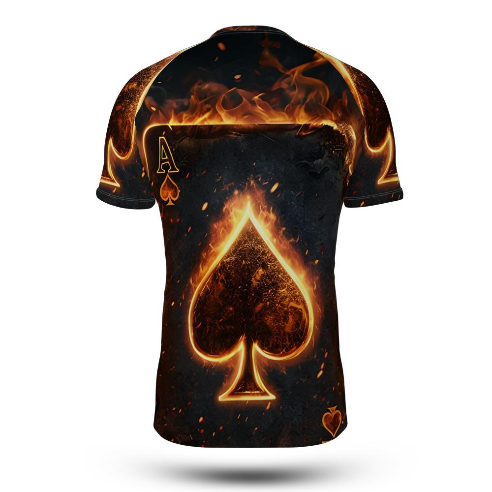 Design That Dominates: Featuring a striking Ace of Spades motif engulfed in fire, it symbolizes power, luck, and unstoppable drive. The vibrant graphics won’t fade, no matter how many times you wash or wear it.