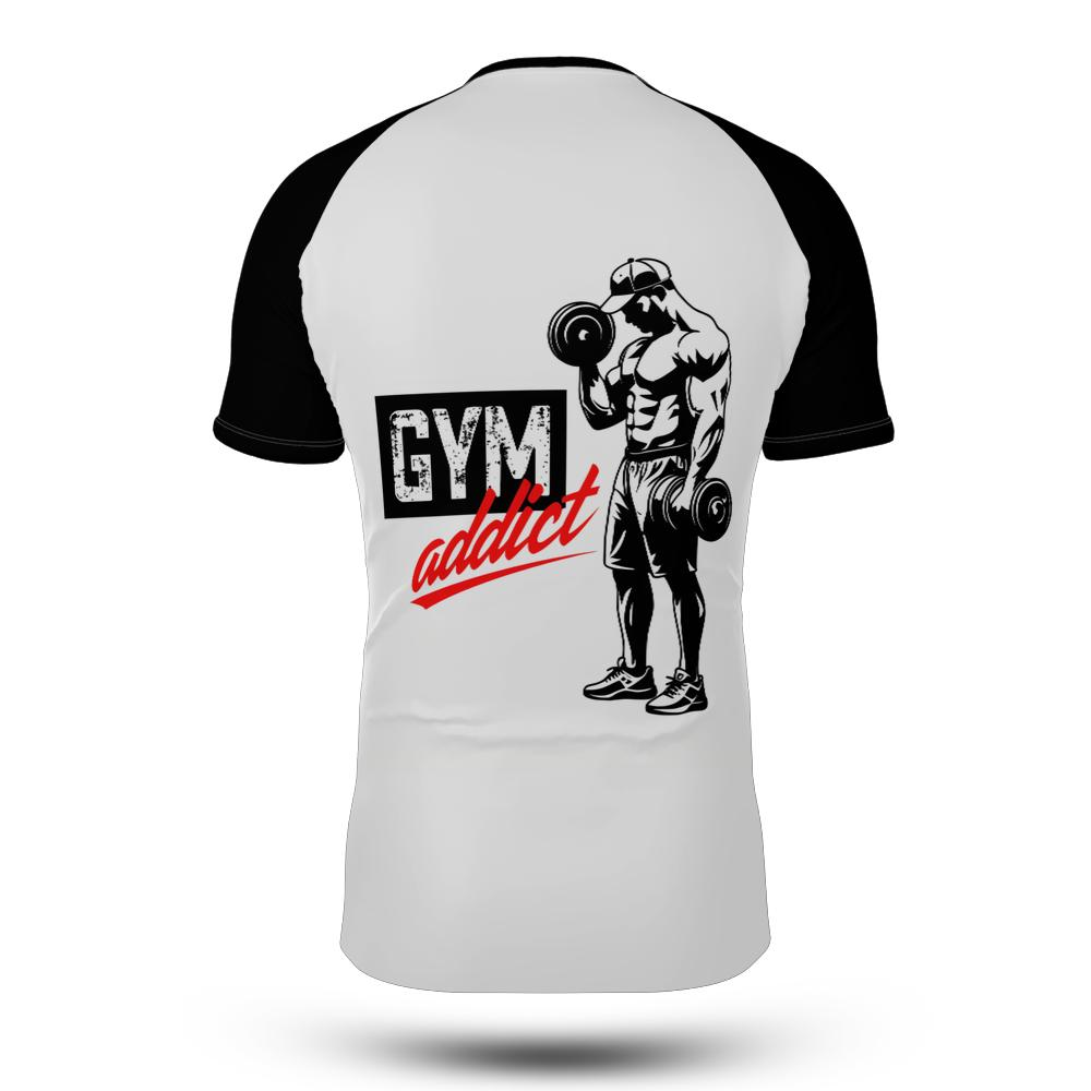 Striking bodybuilder graphic and bold Gym Addict logo
